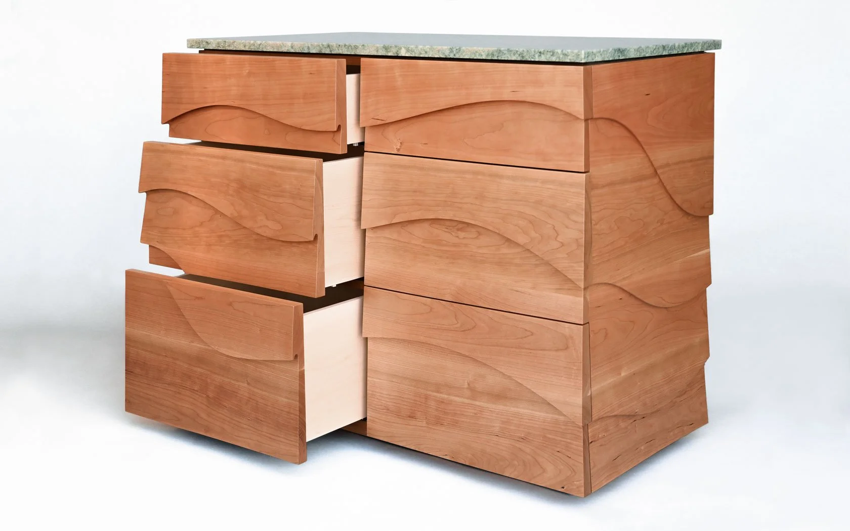 Inspired by wind-eroded rocks at Ocean Beach in California, Melt is a dresser that resembles the organic lines and silhouette of the seascape.